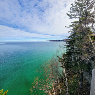 This is the most popular spot and overlook in Pictured Rocks. It's also the only cliff area accessible by vehicle. The short trail to get there is paved. When you step onto the overlook and see the turquoise, clear water, it takes your breath away! There's also a trail to a lower overlook that we almost missed- keep following the sidewalk to the wooded area and you'll see steps leading down!